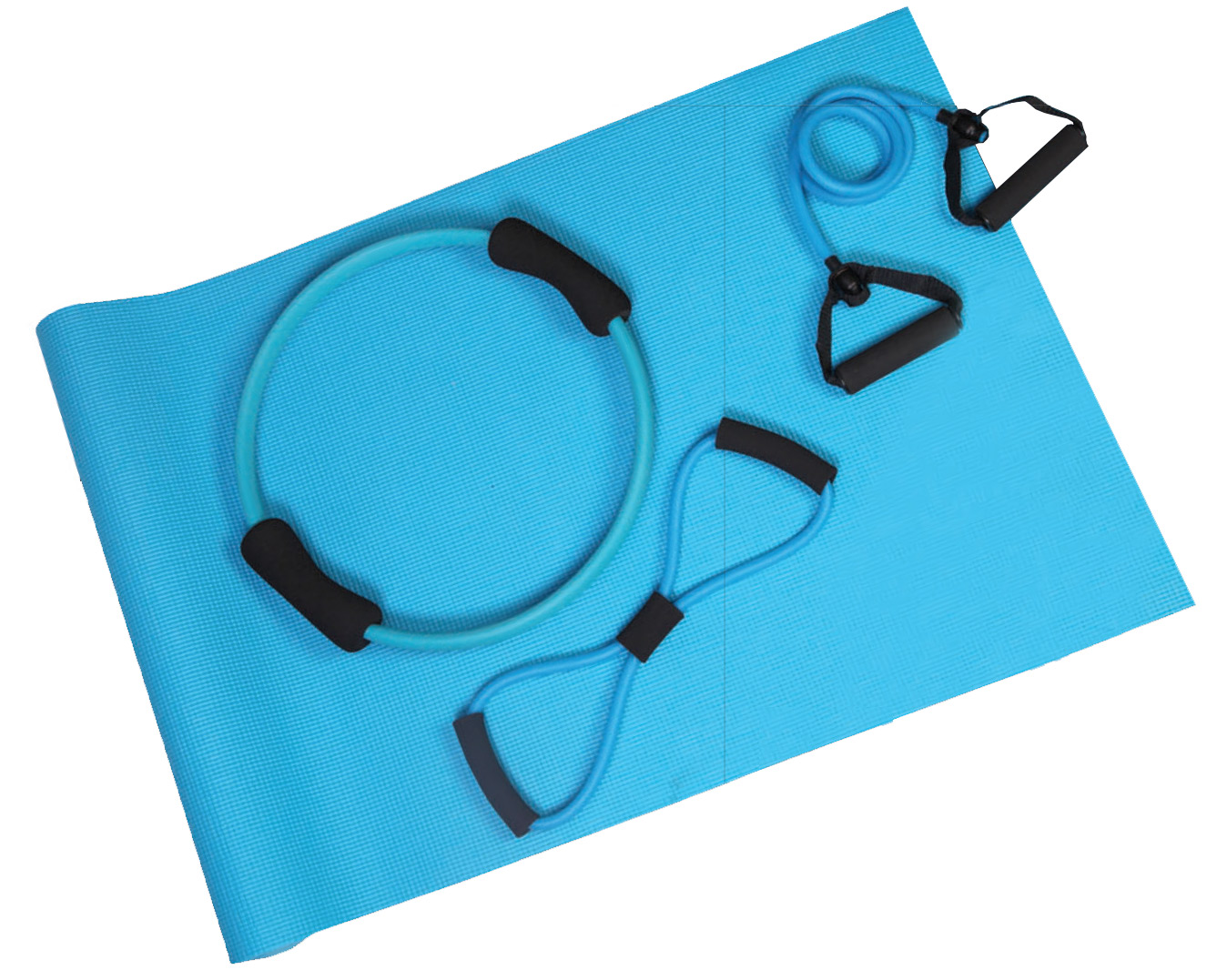 Dette er et komplet yoga sæt med 3 træningselastikker og en lækker træningsmåtte.Det er 3 forskellige træningselastikker, der hver i sær giver de varierende træningsøvelser.Alle produkterne er lavet af lette, holdbare og vaskebare materialer.