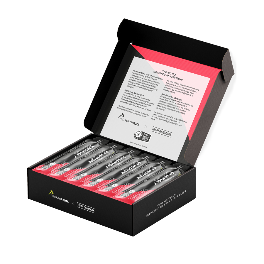 Gelen smager af appelsin, og hver gel leverer 45 g kulhydrat i et letflydende format, som gør den nem at indtage under træning og konkurrence. Elite Energy Gel45 indeholder kulhydrat fra maltodextrin og fruktose. Team Danmark Elite Energy Gel45 er udvikle