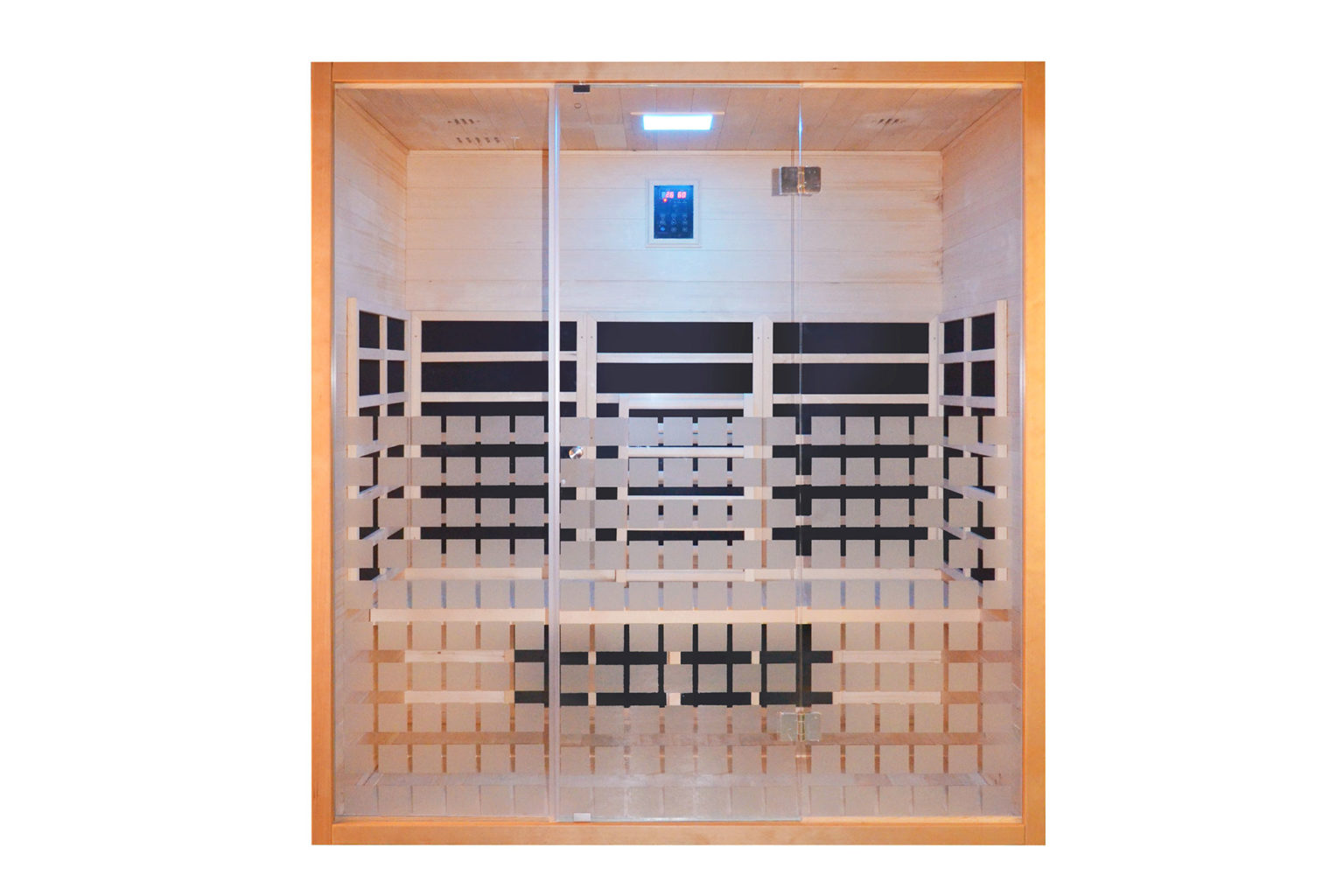 Luksus infrarød sauna i stilrent og minimalistisk design. Saunaen er udfomet i kraftigt træ af høj kvalitet.Kabinen kan rumme 2- 3 personer og har højtalere med bluetoothafspiller integreret.