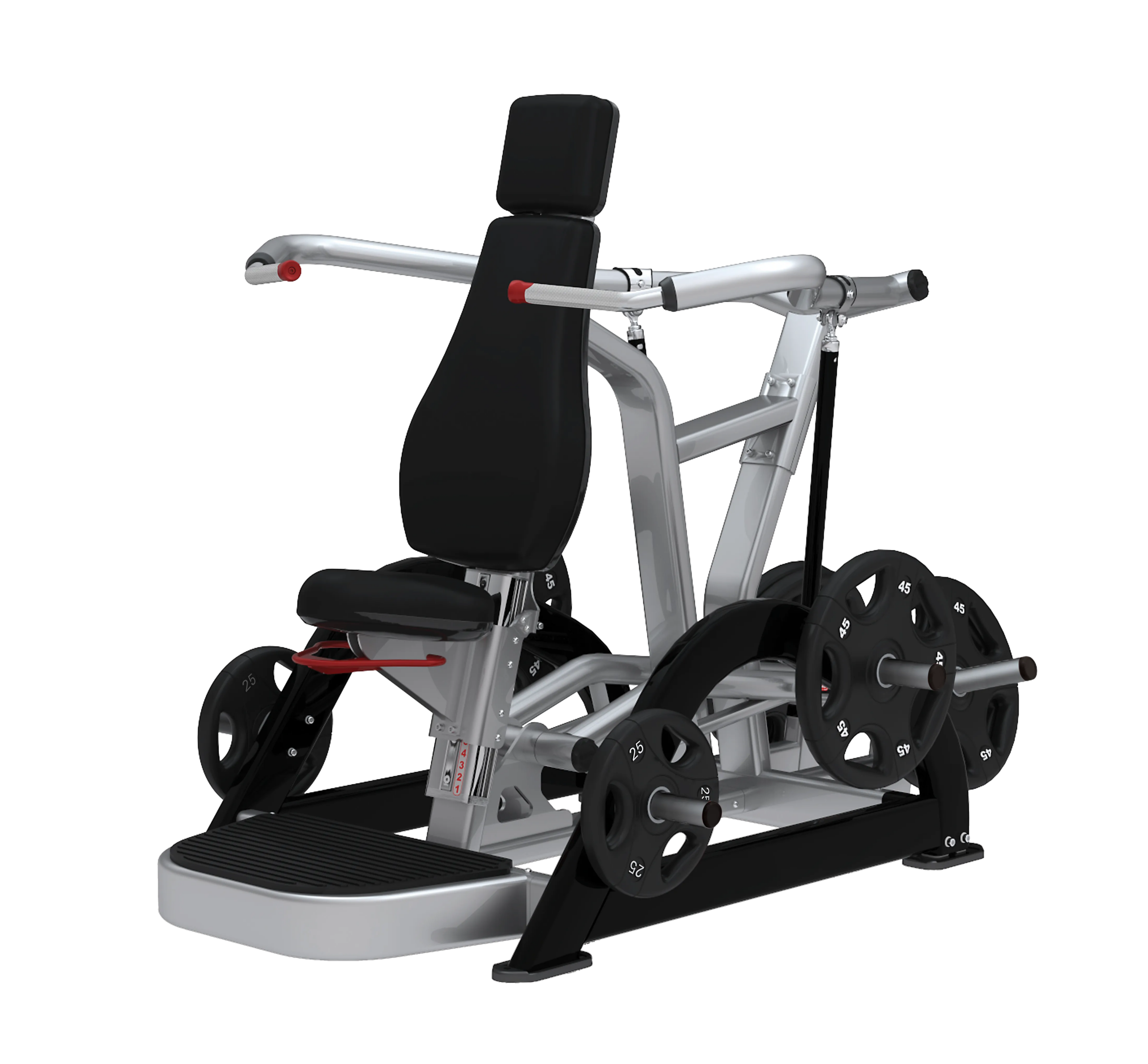 Denne enhed er plate-loaded, hvilket giver dig øjeblikkelig fleksibilitet i belastningen. Du bruger standard vægtplader til at skrue belastningen op eller ned, hvilket gør det let at tilpasse for hele holdet eller forskellige træningsfaser. Fordelen for dig som kunde er konkret: hurtig ændring af vægten mellem sættene uden at skulle omstille eller justere kabler og mekanik. Det gør træningen mere effektiv og minimere nedetiden mellem øvelserne, hvilket er særligt attraktivt i private træningsrum eller erhvervsfitnessmiljøer, hvor tid er en premium.