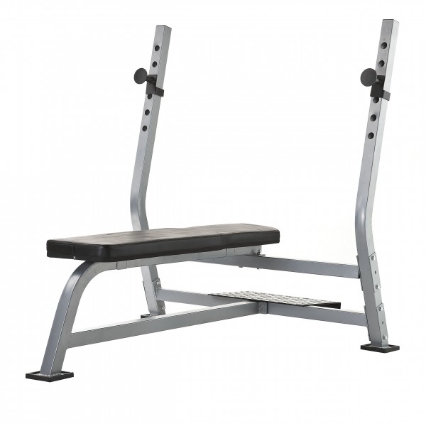 Nordic Fighter Bænkpres Basic som er yderst solid og fremstillet til professionelt brug.Højden på bænkpressen kan justeres i 6 niveauer og der er ståplade til spotteren, bagved bænken.