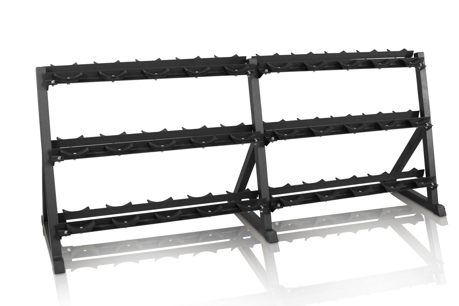 Dette håndvægte stativ kan opbevarer 15 sæt håndvægte. Det gør det nemt, at holde styr på dine vægte og du kan lægge dem i kilo størrelse og det er hermed nemt når du skal træne, at få fat i lige nøjagtig den vægt du skal bruge til netop din træning.